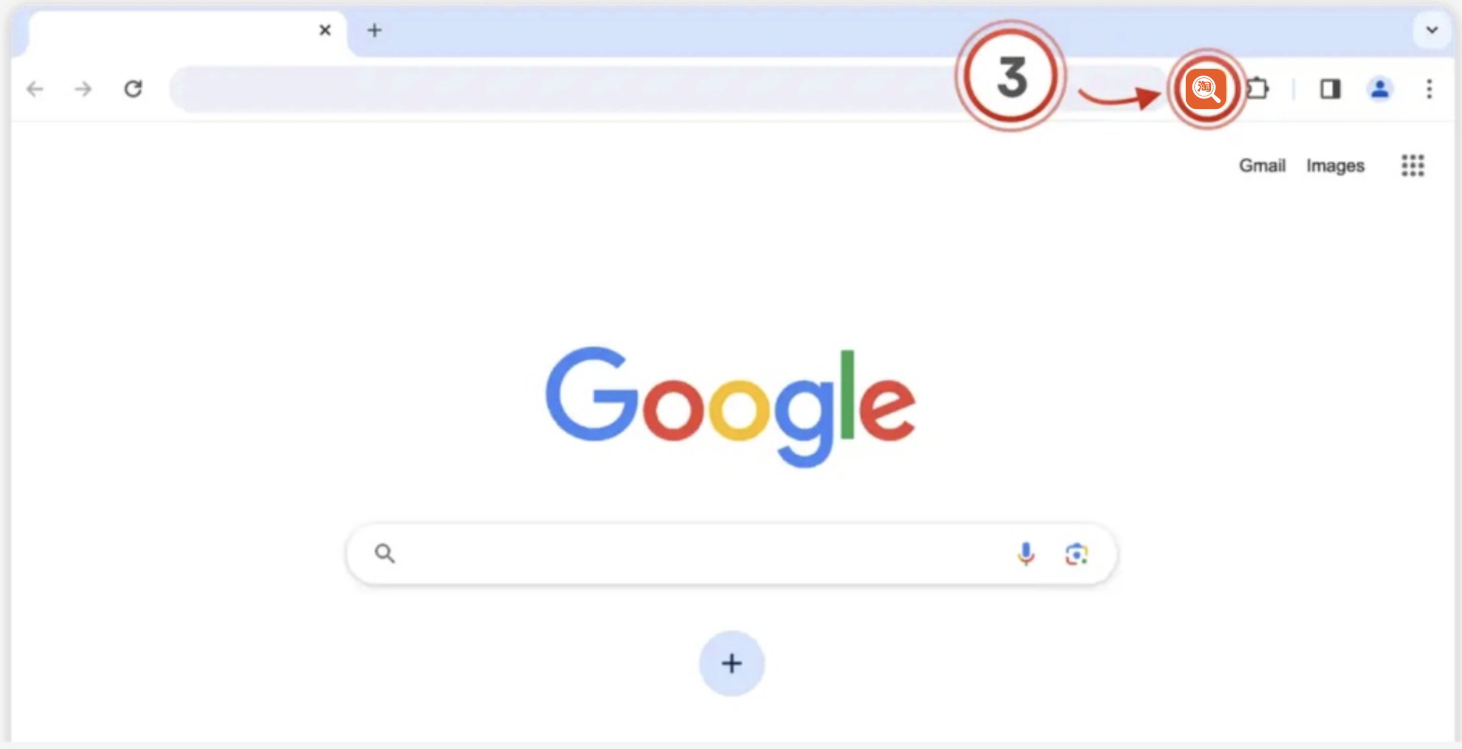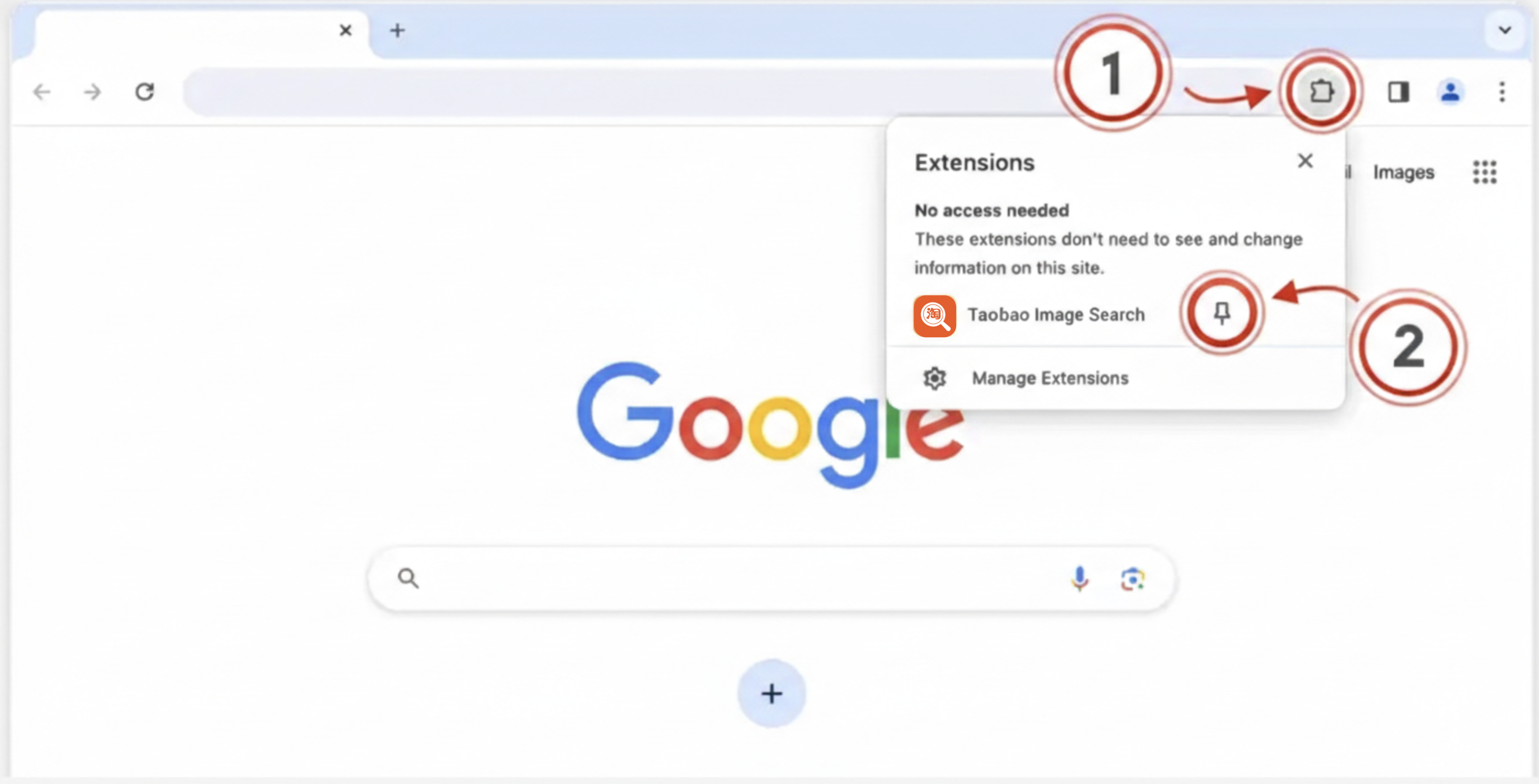 Click the puzzle piece (1) in the top right of your browser. Then, click the pin (2) next to the extension: